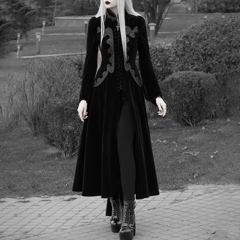 Materials: Poly Blend, with embroidery detail on the chest. The jacket is about knee length, please check the measurement chart.